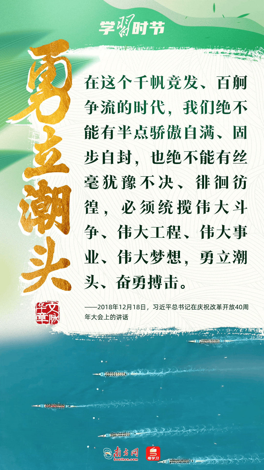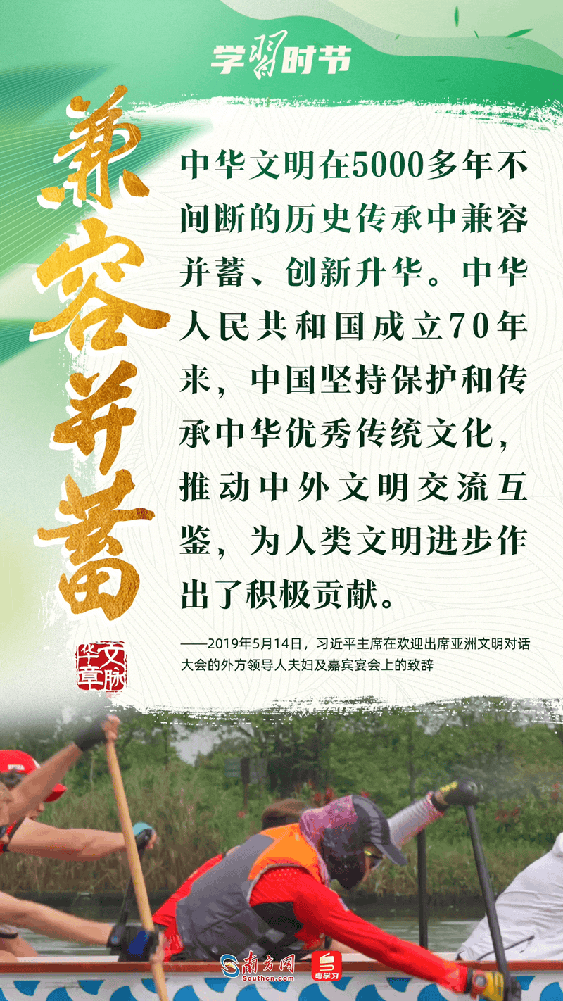 “中华优秀传统文化是中华民族的精神命脉。”习近平总书记强调,要努力从中华民族世世代代形成和积累的优秀传统文化中汲取营养和智慧,延续文化基因,萃取思想精华,展现精神魅力。让我们深刻感悟总书记的殷切寄语,一同感受龙舟竞渡时的欢腾场景,从中汲取中华民族血脉传承中奔涌的精神力量。