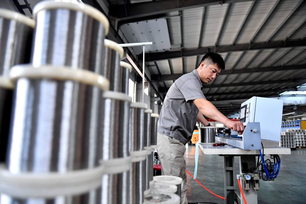 2024年8月30日,安平县一家丝网企业的工人在检测产品质量。 (资料片)新华社发