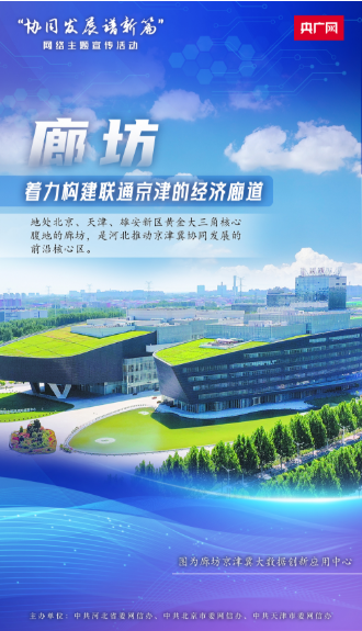 在“协同发展谱新篇”网络主题宣传活动中,我们走进廊坊。从空中俯瞰,廊坊京津冀大数据创新应用中心犹如一艘“乘风破浪、勇立潮头”的巨轮,站在该建筑顶层向西北方向望去,北京的轮廓时隐时现,数据从这里传到北京,只需要2-3毫秒。