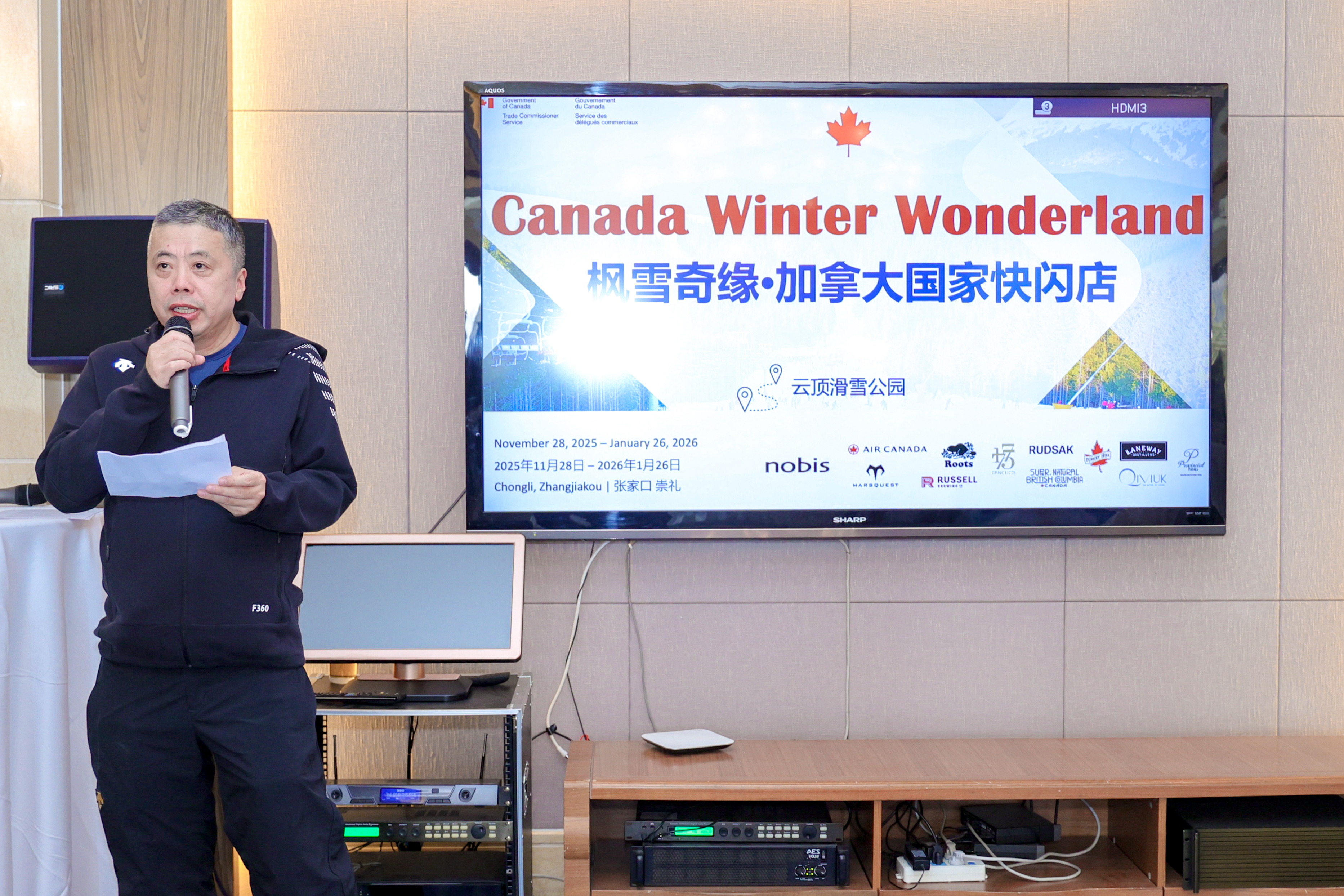加拿大驻华使馆商务参赞林琳在致辞中表示,“云顶滑雪公园的壮美群山与洁白雪景,让人仿若置身加拿大本土,倍感亲切。”她同时指出,“中国市场始终对加拿大产品高度认可,近年来加拿大对中国出口额持续增长,充分彰显中国市场对加拿大企业的重要性。”