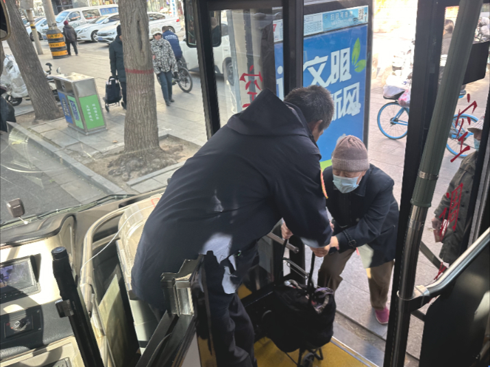 2025年12月5日15:47分,李建永驾驶车辆行驶至平安公园站位时,透过车窗看到一位年迈的老人正拄着拐杖,费力地拎着鼓鼓囊囊的购物袋准备上车。见此情景,李建永立刻稳稳拉上手刹,起身快步走到车门口,微笑着对老人说:“老师傅,您慢点,我来扶您。”他搀扶老人一步一步上公交车,又贴心地将老人安排在离车门最近的爱心座位上,并叮嘱道:“您坐好,下车就从前门下吧,离得近。”老人感动得连连道谢:“太谢谢你了,要不是你,我这老胳膊老腿的,还真不好上车。”