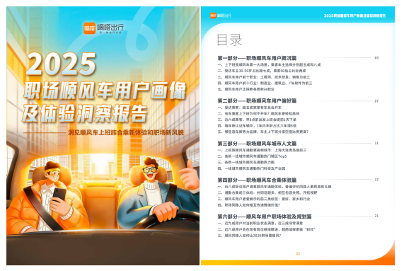 12月31日,嘀嗒出行发布《2025职场顺风车用户画像及体验洞察报告》,基于嘀嗒顺风车大数据和近万名嘀嗒顺风车用户调研,从职场顺风车用户概况、用户偏好、城市人文、合乘体验、职场规划五个维度展开,以展现职场顺风车的用户画像、消费偏好、以及顺风车对职场人的独特价值,并一定程度折射当下经济结构调整和转型升级期,各行各业职场人的探索奋进和向上风貌。