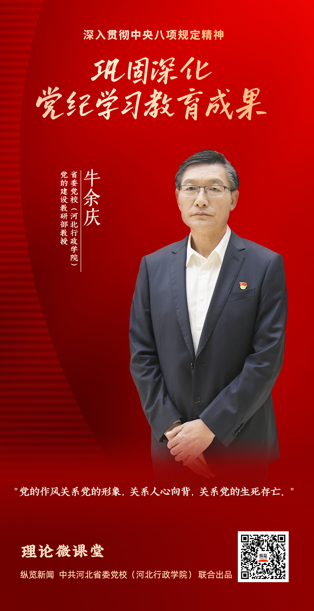 如何总结和汲取党纪学习教育宝贵经验,开展好深入贯彻中央八项规定精神学习教育?第三期,一起来看省委党校(河北行政学院)党的建设教研部教授牛余庆主讲的《巩固深化党纪学习教育成果》。