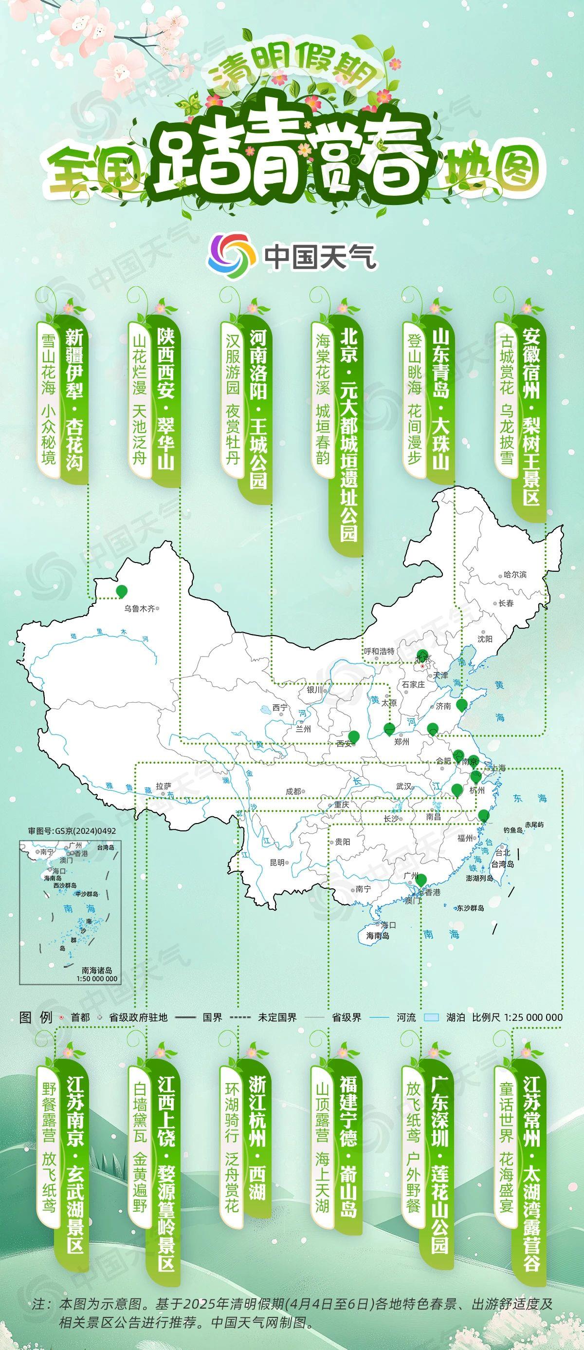 明天(4月4日),清明假期将正式开启。“梨花风起正清明,游子寻春半出城。”我国自古就有清明踏青出游的习俗,此时,梨白柳青、桐花初绽、桃杏争春,正是踏青出游的好时候。这里有一份清明假期踏青赏春地图,带你追寻春天的足迹,邂逅最美春光。