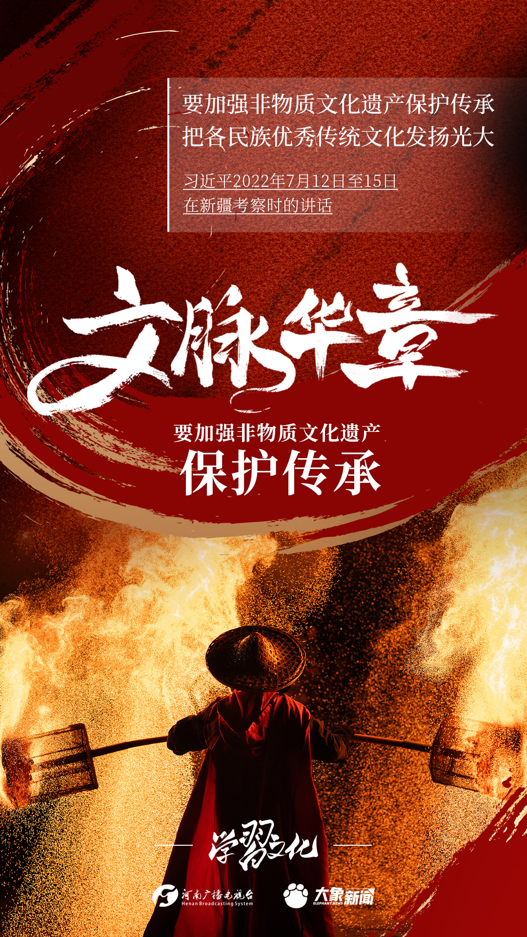 非物质文化遗产是中华优秀传统文化的重要组成部分,是中华文明绵延传承的生动见证,是我国各族人民宝贵的精神财富。习近平总书记十分关心非物质文化遗产的保护传承,多次强调“要扎实做好非物质文化遗产的系统性保护”“培养好传承人”等。大象新闻为您梳理,邀您一起学习、领悟、践行。