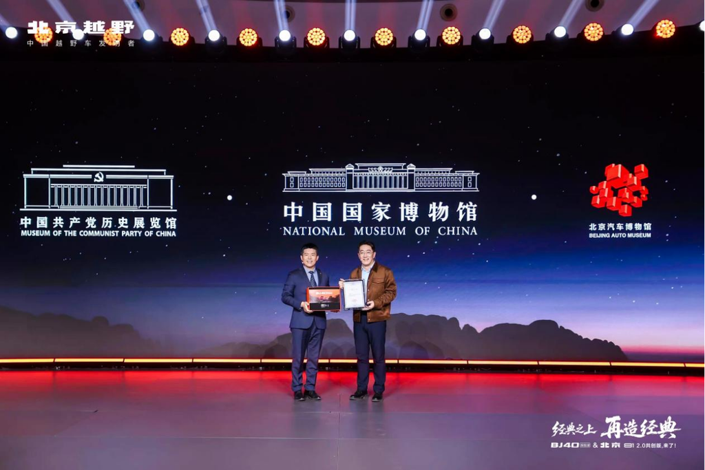 BJ40探险家入馆并入展北京汽车博物馆收藏,将在博物馆里继续讲述中国越野的故事。此前,BJ40增程作为“中国制造‘十四五’成就展”唯一的越野品类展示车,亮相中国国家博物馆;BJ80C阅兵车则被中国共产党历史展览馆荣耀典藏。至此,北京越野成为被“三馆连藏”的车企。
