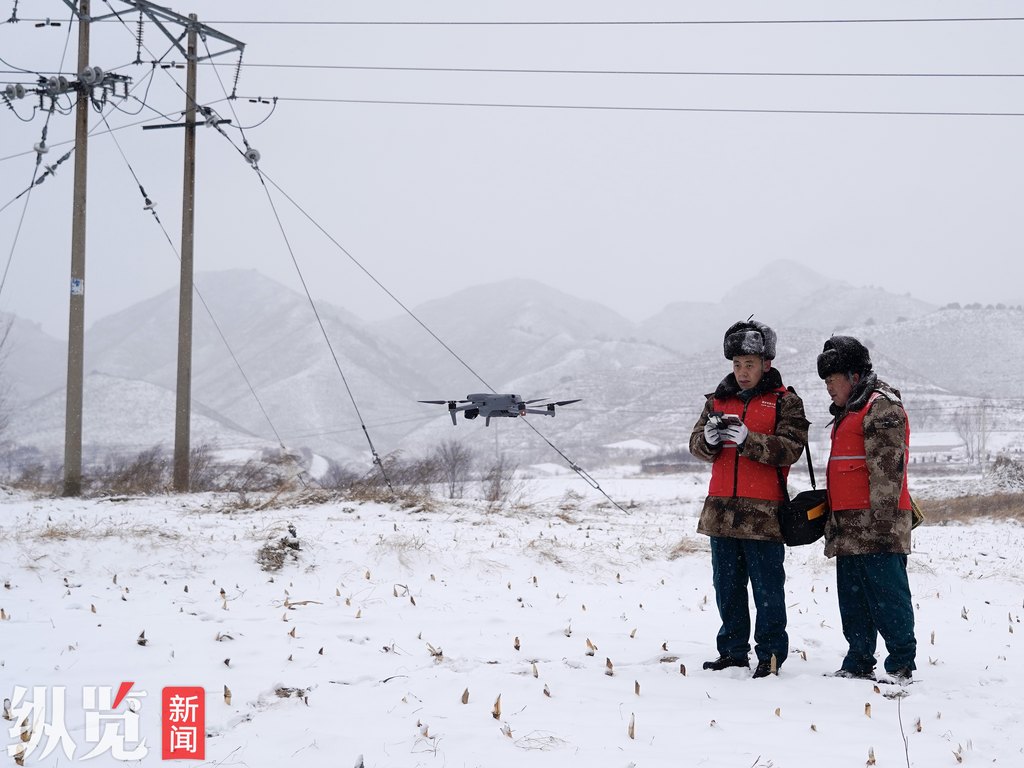 纵览客户端讯(屠铁存 石静)1月17日,河北迎来2026年首轮降雪,18日气温持续走低,在保定西部山区涞源县,最低气温已降至零下10℃。当日上午,国网涞源县供电公司员工顶风冒雪,运用无人机对山区保暖保供线路开展雪中特巡,精准排查积雪覆冰情况,全力保障山区群众温暖度冬。