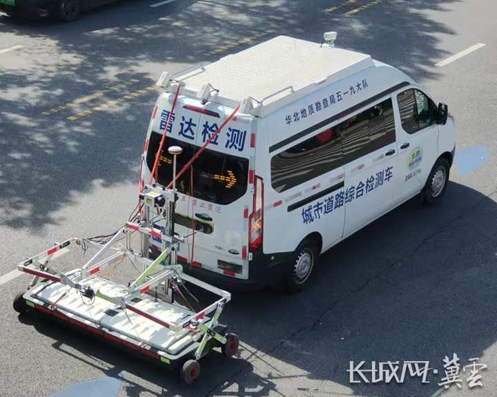 河北九华的雷达检测车进行路面勘测。