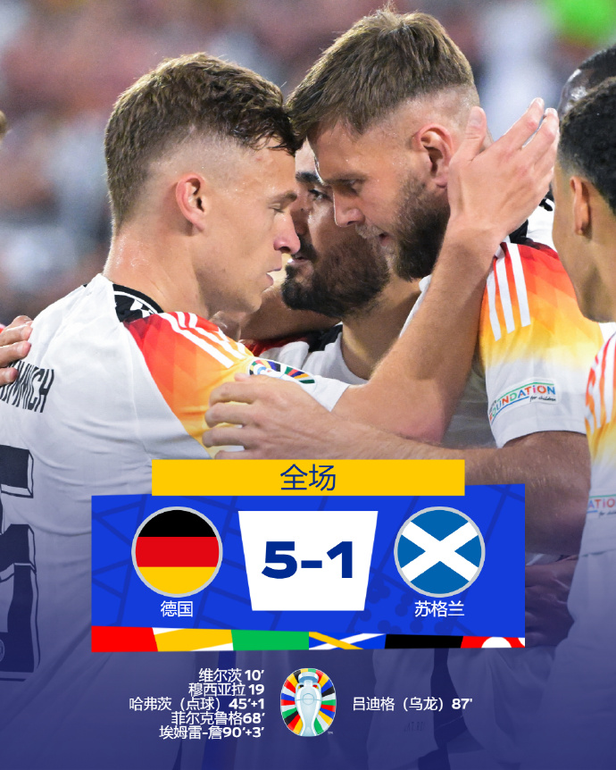 德国队5比1大胜。图片来源:欧洲杯社交媒体