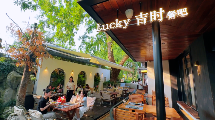 傍晚4点多,店门口已坐满了排队等号和慕名前来打卡的年轻人。周飞正忙着准备晚市的餐品,父亲在院子里打理鱼池和花草。退休后,河岸的小院成了父亲闲暇时最喜欢待的地方。空闲的时候,周飞便会陪着他,坐在河岸,回忆裹挟着流水声而来。
