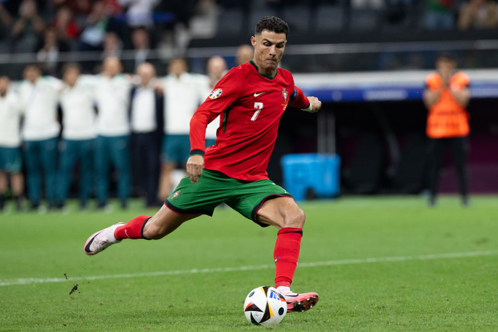 北京时间2日凌晨,葡萄牙队球员克·罗纳尔多在点球大战中主罚点球命中。新华社记者 肖艺九 摄