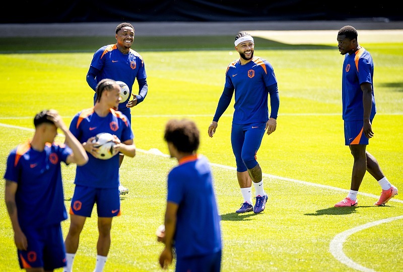 △9日,德国沃尔夫斯堡,荷兰队备战半决赛。