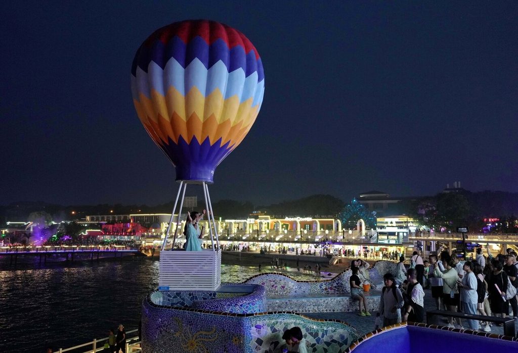 游客在秦皇岛市北戴河区碧螺塔海上酒吧公园游览。新华社记者杨世尧摄