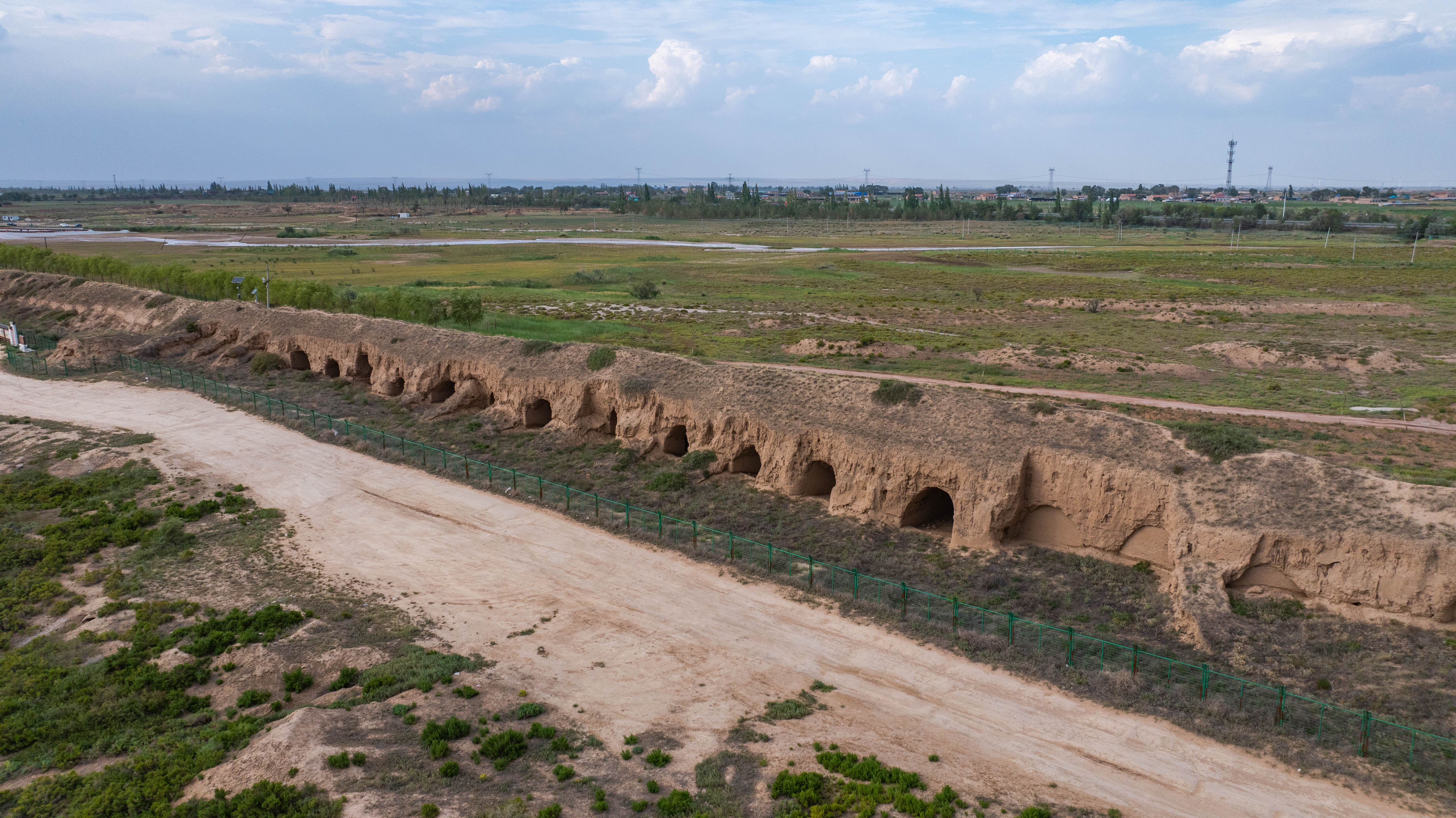 在我国的夯土长城中,盐场堡长城因为抗战时期在墙体上挖掘的窑洞,成为一段红色历史的重要见证。