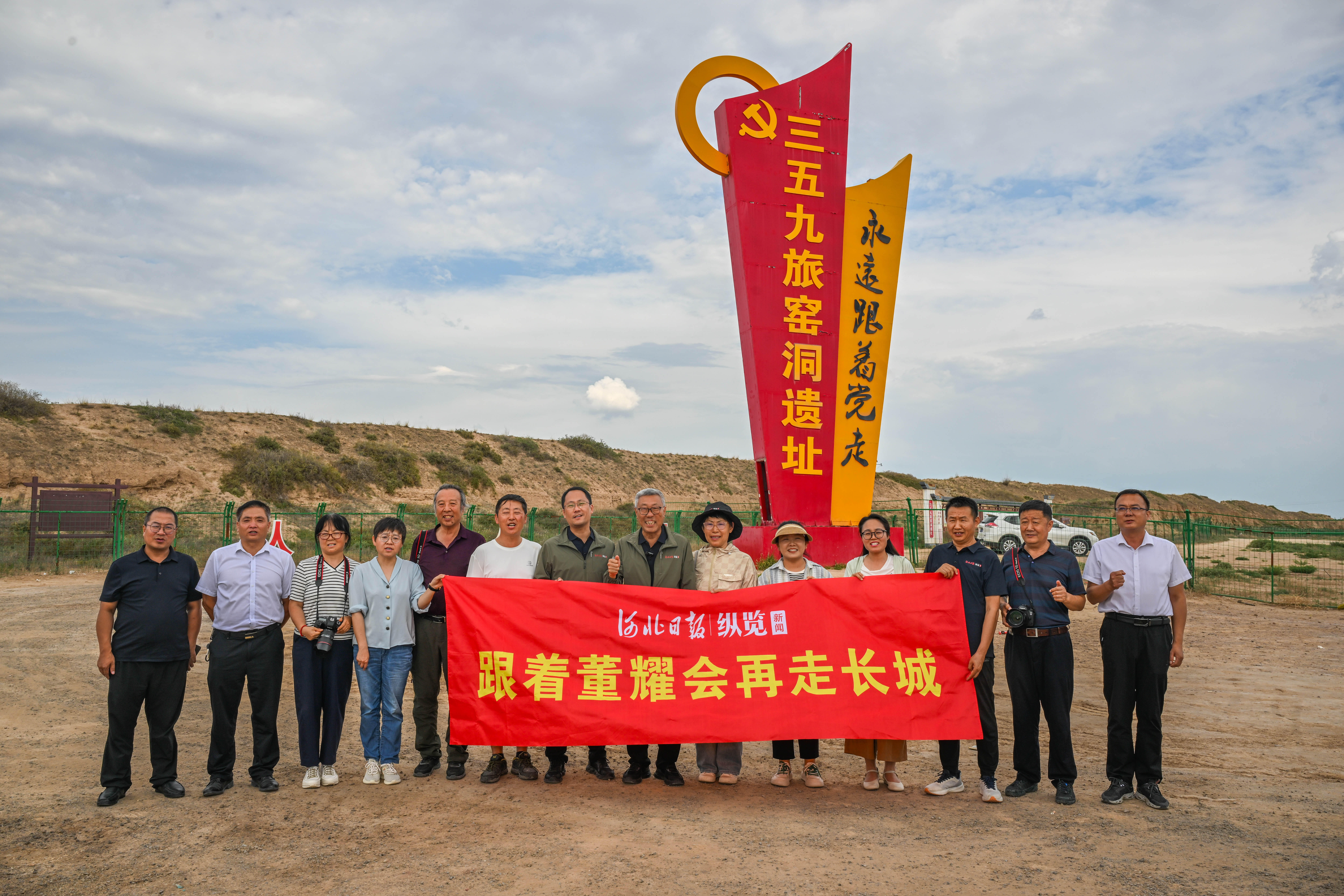 “董老师,又见面了。”在三五九旅窑洞遗址纪念碑旁,70岁的定边县长城学会会长、当地长城摄影家李生程与67岁的董耀会一碰面,两双手就紧握在一起。