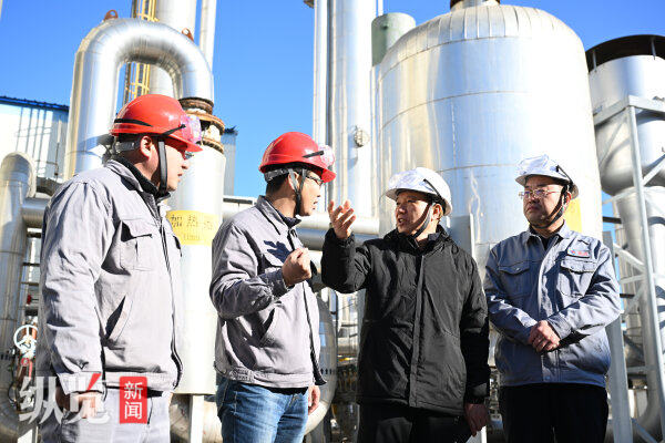 2月5日,河北省发展改革委民营经济发展局局长黄文忠(右二)在河北诚信集团有限公司厂区与工作人员交流工作。河北日报记者史晟全摄
