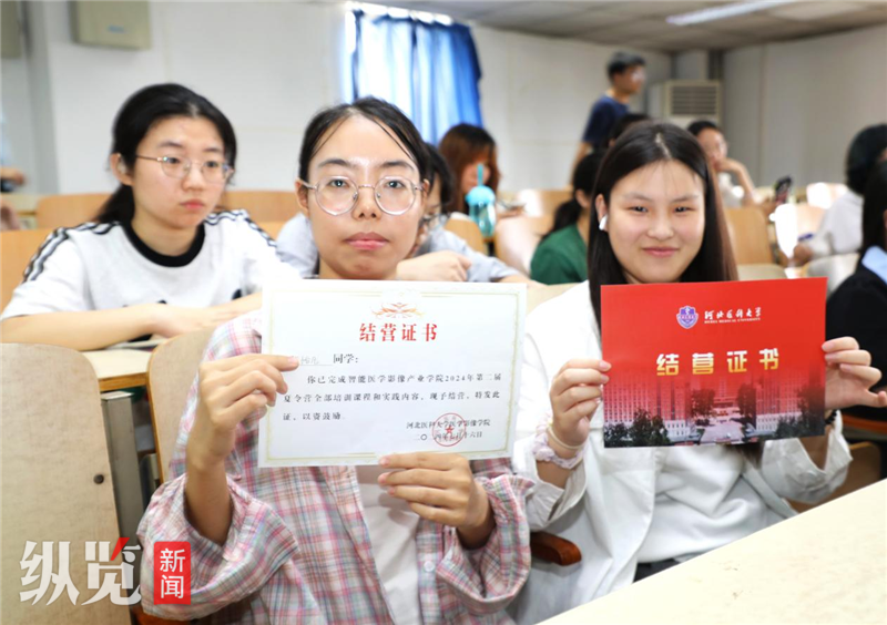 纵览客户端讯(记者 檀亚楠)7月16日,河北医科大学智能医学影像产业学院夏令营在学校建华校区结营。结营仪式上,学院为所有表现突出、成绩合格的同学都颁发了结营证书。在智能医学影像标注竞赛、超声技术扫描竞赛、超声医学创新设计竞赛中表现优异、获得奖项的同学,学院还进行了表彰和奖励。