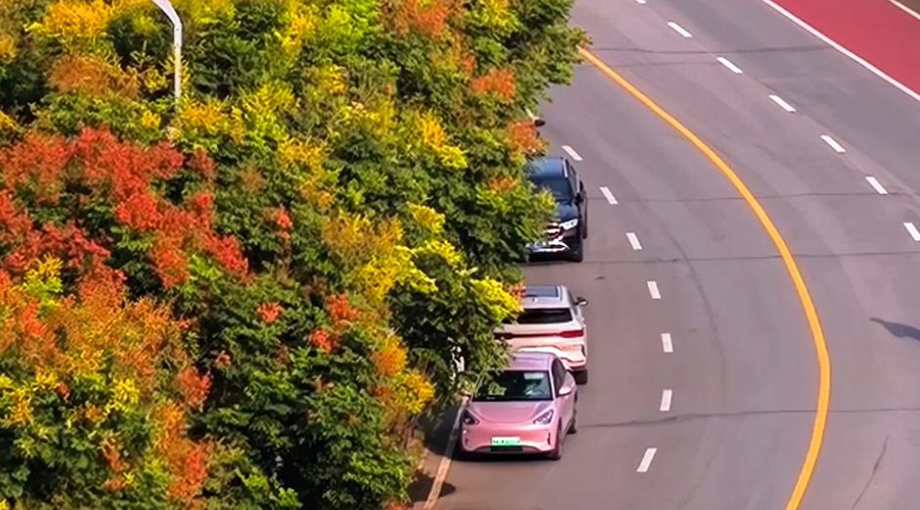 在石家庄市明曦湖公园南侧,路旁的栾树进入一年中最富诗意的观赏期。绿叶、黄花、红果交织,尽显秋日的斑斓多姿。 摄...
