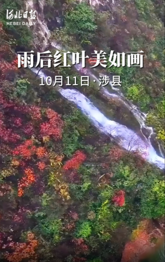 秋雨初歇,涉县庄子岭“红”了!漫山遍野的红叶,如霞似火,层层叠叠,勾勒出浓烈的太行秋色。 拍摄丨王文静、路海东...