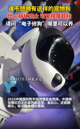 10月17日,2025中国国际数字经济博览会现场,中国移动展区超可爱四足机器狗萌化观众,会超多技能,这样的宠...