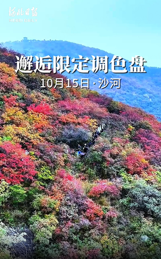 沙河市佛照山迎来红叶最佳观赏期,漫山黄栌换上五彩盛装,斑斓色彩仿佛调色盘,美不胜收。(摄制丨王伟、杨喜旺)