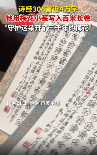 纵览视频丨诗经305首近4万字,他用梅花小篆写入百米长卷,“守护这朵开了三千年的梅花”
