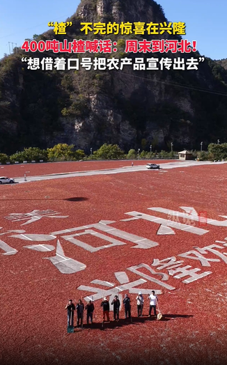 近日,河北兴隆,一位网友用400吨山楂在晾晒场上拼出了河北的文旅宣传标语“这么近,那么美,周末到河北”,推介河...