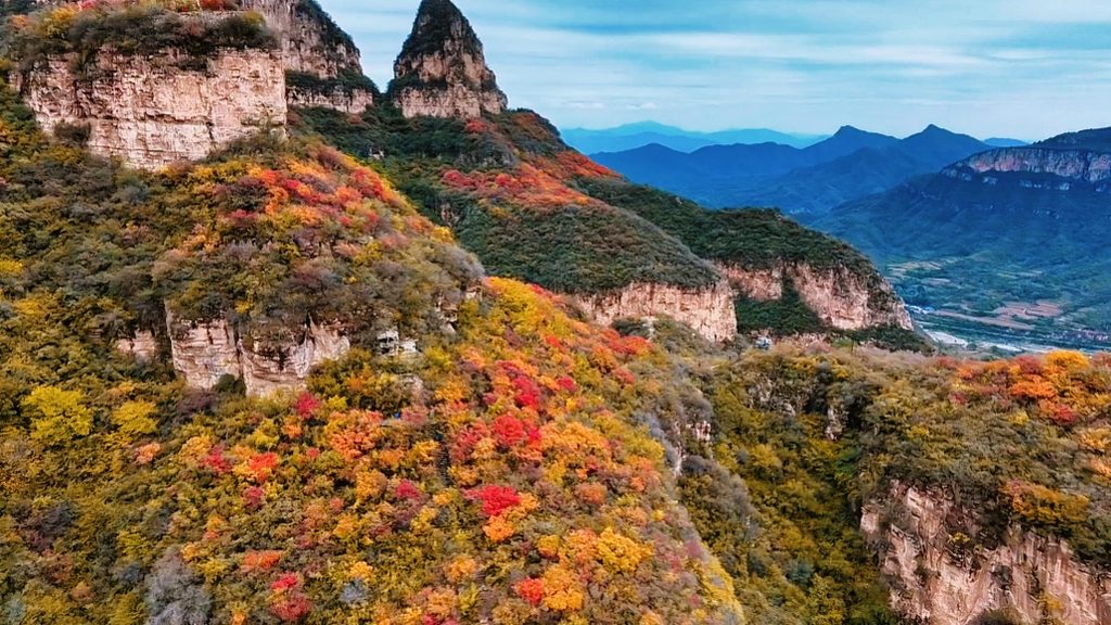 太行深处,红叶正当时。在平山县瑜伽山,漫山红叶与黄绿枝叶交织,层层晕染,构成一幅磅礴的秋色长卷。 摄制|吴长新...