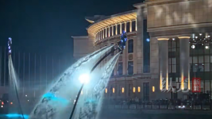 纵览视频丨水上飞人驭浪而行,与灯光下的东方杂技城重叠,吴桥夜晚成为浪漫的具象化